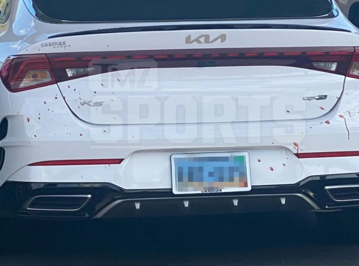 TMZ获得的现场图片显示,冲突附近停放的车辆上溅有血迹。